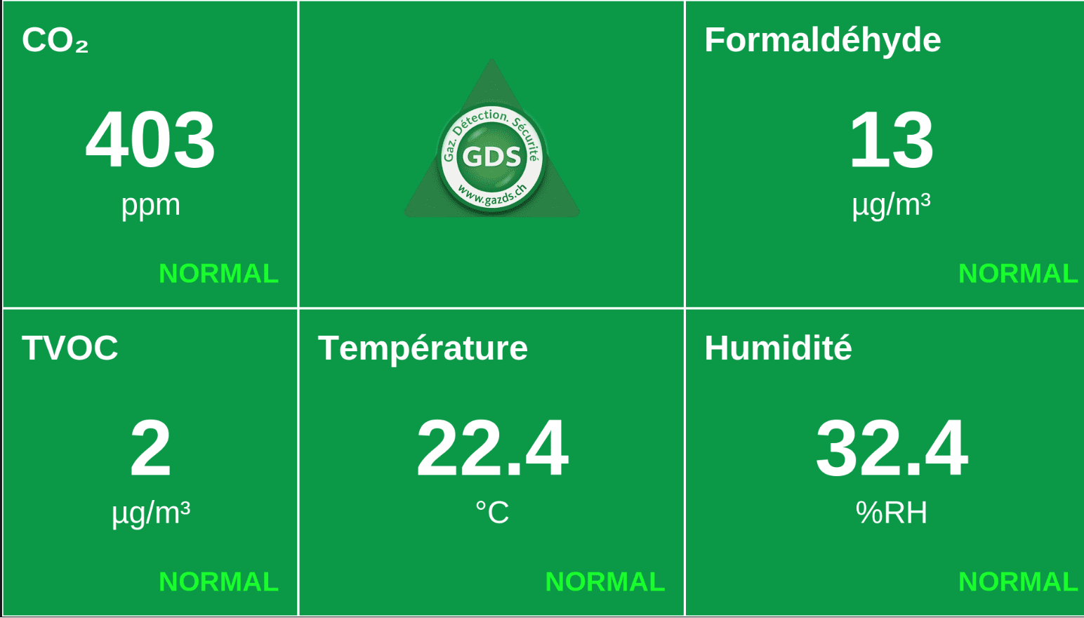 Découvrez notre produit phare : un système de détection de gaz avancé qui va au-delà de la simple surveillance. Avec un affichage clair et intuitif des valeurs des capteurs (CO2 en ppm, formaldéhyde et TVOC en µg/m³, température en °C et humidité en %RH), notre dispositif identifie instantanément les anomalies et réagit proactivement.